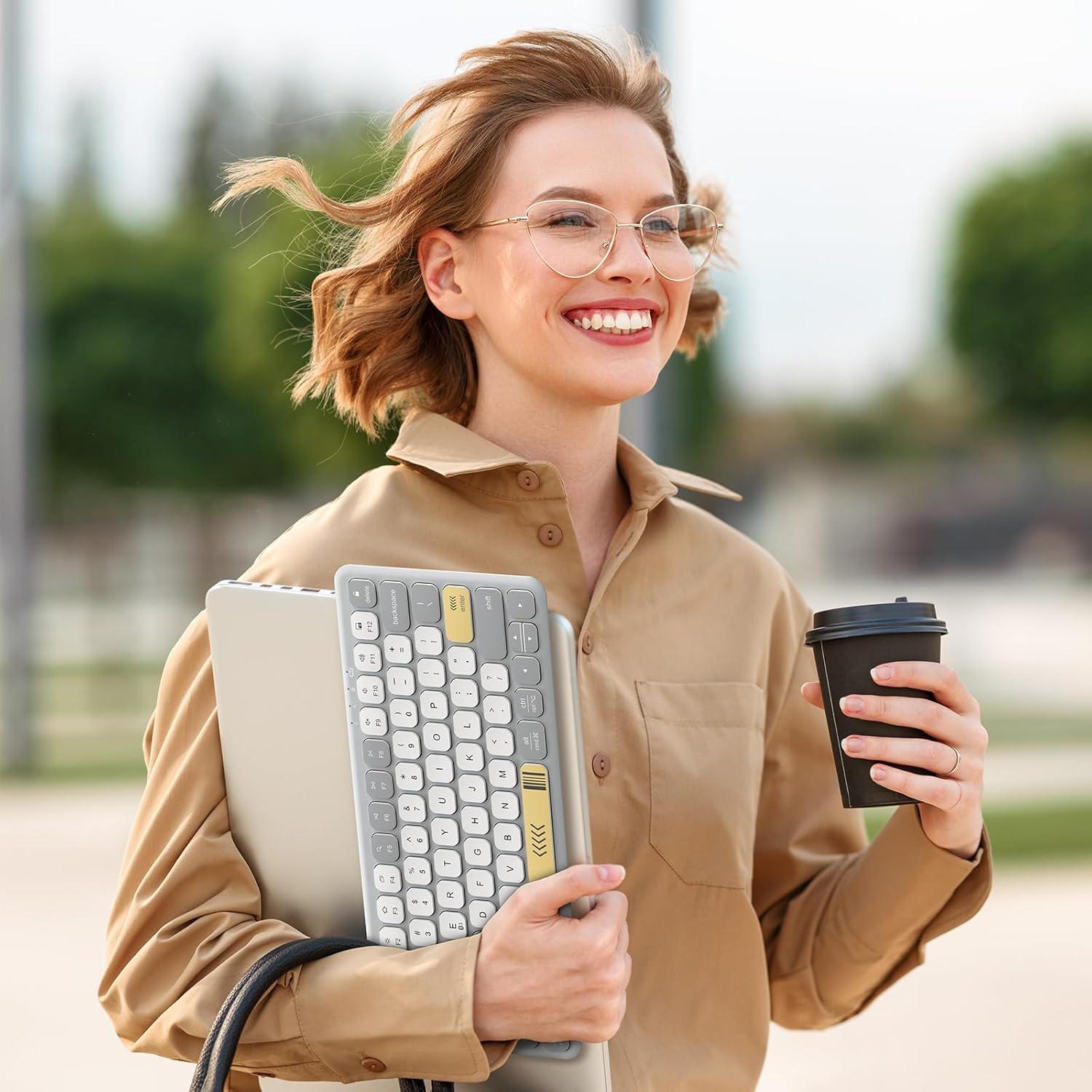 Effortless Multi-Device Mastery: Seamlessly toggle between 3 Bluetooth devices with one-touch Fn+Q/W/E shortcuts – works flawlessly with iPads, iPhones, Tablets, etc.