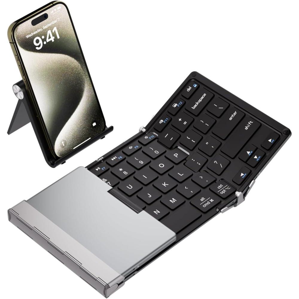 iClever Foldable Bluetooth Keyboard, BK18 Foldable Keyboard with Touchpad and Number Pad, Portable, Rechargeable, Pocket Size for Travel, Compatible with iPad, iPhone, Laptop