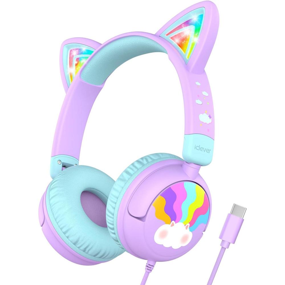 Our holiday sale features the best deals on iClever Kids Headphones Cat Ear, LED Light Up, 85dBA Safe Volume, Stereo Sound Toddler Headphones for Travel School, Foldable 3.5mm Wired Kids Headphone for iPad Tablets, Meow Lollipop-Hot Pink(Type C Plug-Purple) and accessories. Shop now and save!