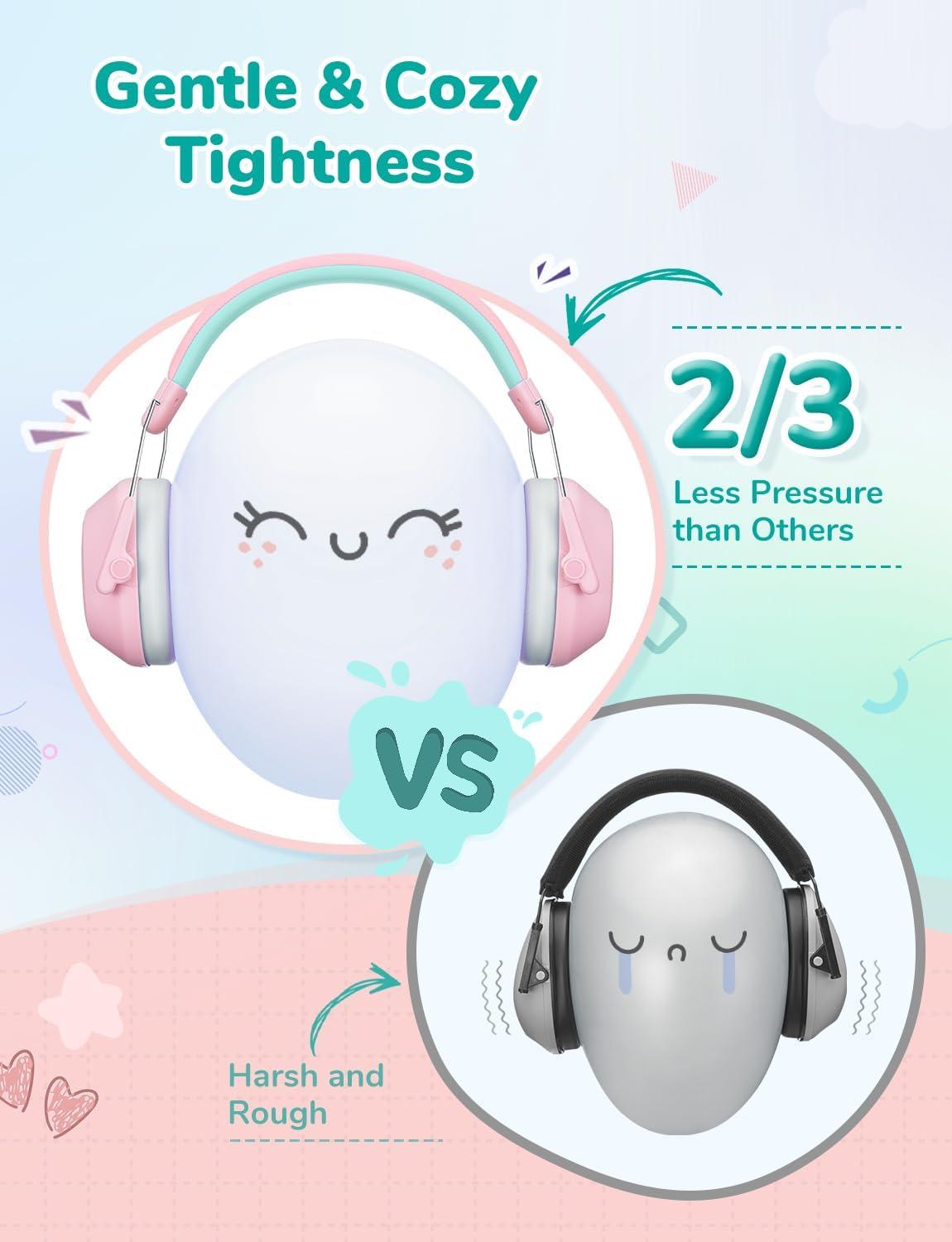 iClever Noise Cancelling Headphones for Kids, SNR 29dB Safety Noise Reduction Ear Muffs for Autism Sensory &Concentration Aid, Ear Hearing Protection for Fireworks/Event/Monster Truck/Concert(Pink)