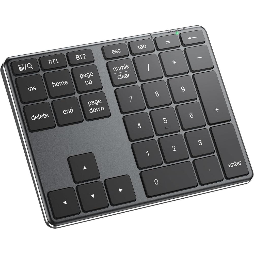iClever Number Pad, Aluminum Wireless Number Pad for Multi Devices, USB-C Rechargeable, External 34-Keys Bluetooth Keyboard for Data Entry, Compatible for Laptop, Mac, iMac, Tablet, PC Desktop(Black)