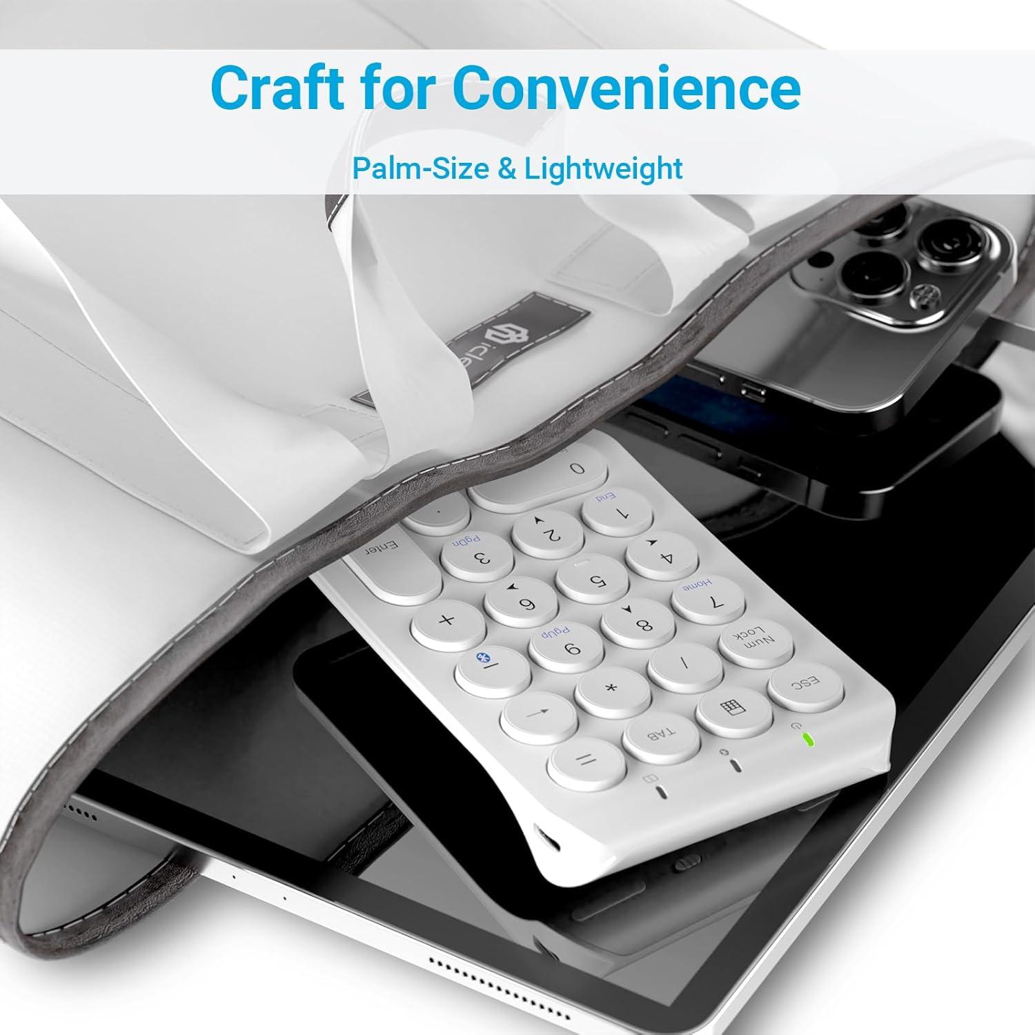 Bluetooth Number Pad: With Bluetooth connectivity, easy to connect and use. The number pad includes Esc, Tab, calculator keys, etc. Perfect for accountants, data entry clerks, and finance personnel.