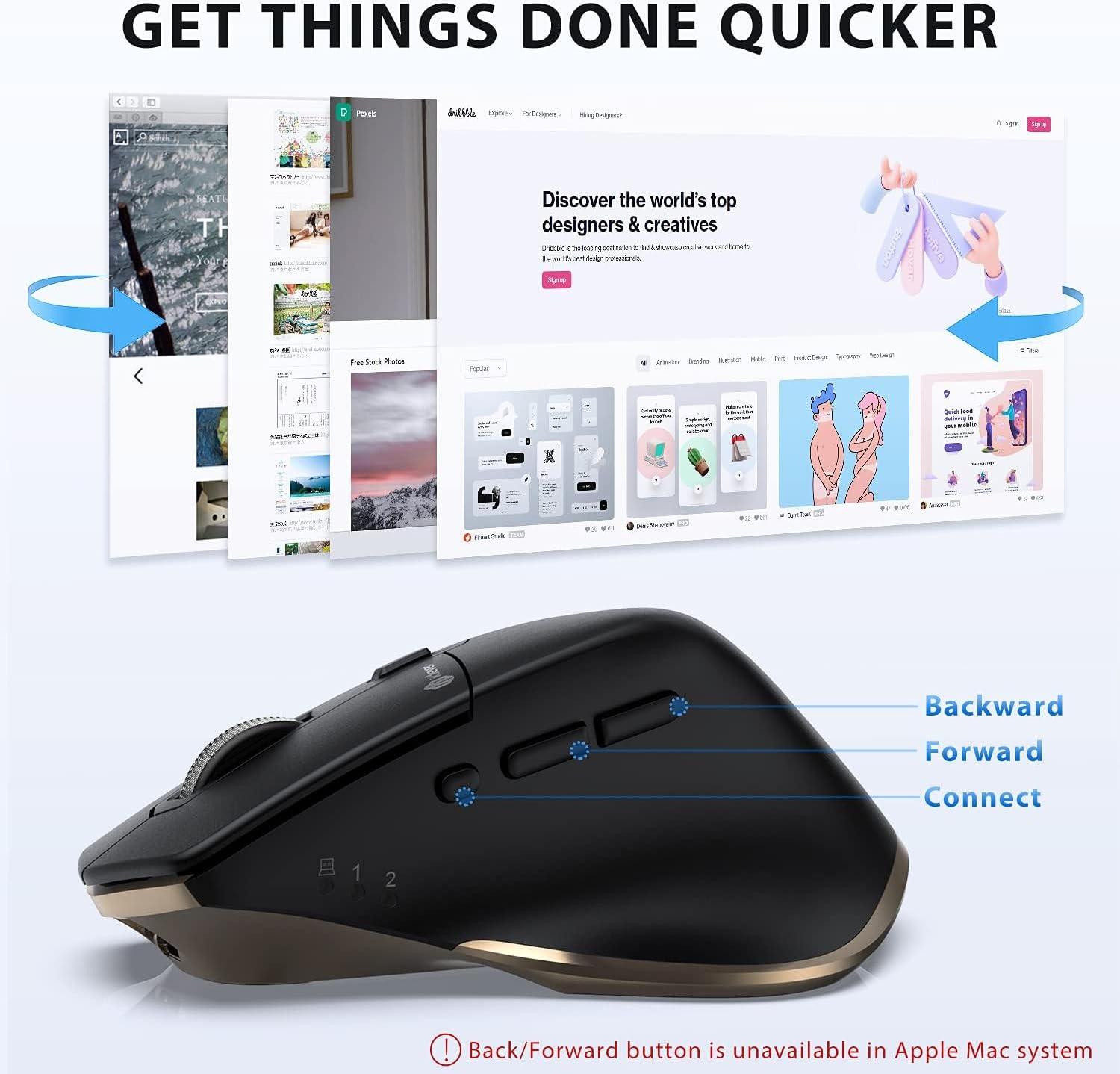 iClever Wireless Mouse with Bluetooth or USB Receiver, 5 Adjustable 2400DPI Rechargeable Computer Mice, Wireless Mouse for Laptop, iPad, MacBook, Tablet, PC(Black-Gold)