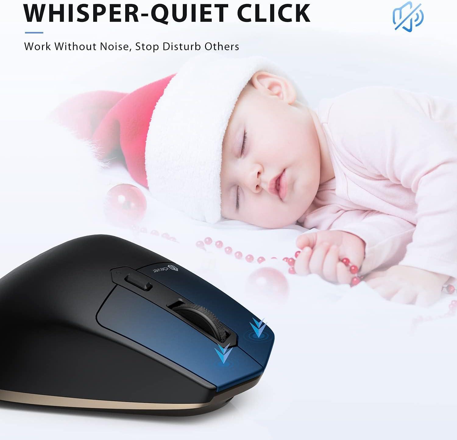 imageiClever Wireless Mouse with Bluetooth or USB Receiver 5 Adjustable 2400DPI Rechargeable Computer Mice Wireless Mouse for Laptop iPad MacBook Tablet PCBlackGold